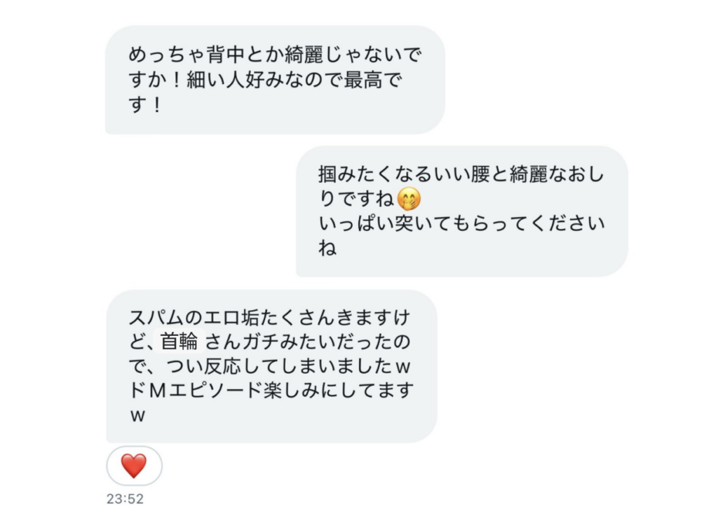 お店でMな感じを出していないのに、初めての時からどs全開で、首輪は驚きつつもすべてを受け入れてしまいました、あとチ○コの形がとにかくタイプで😖